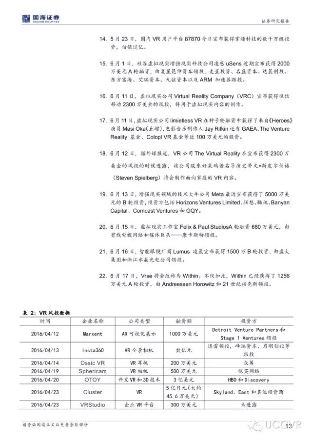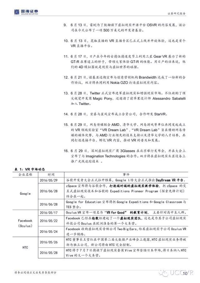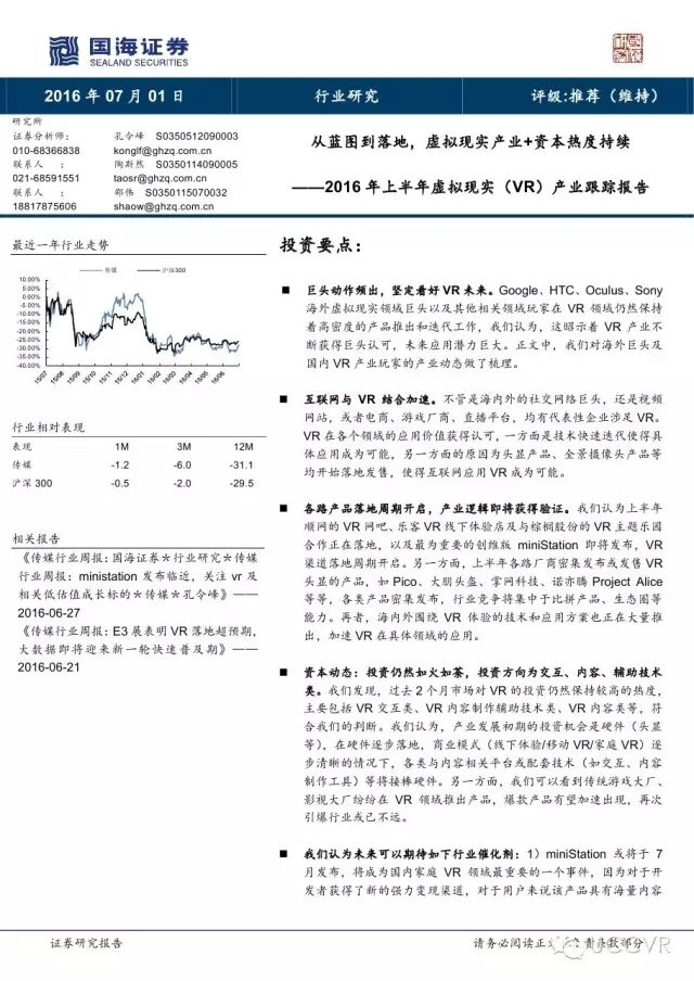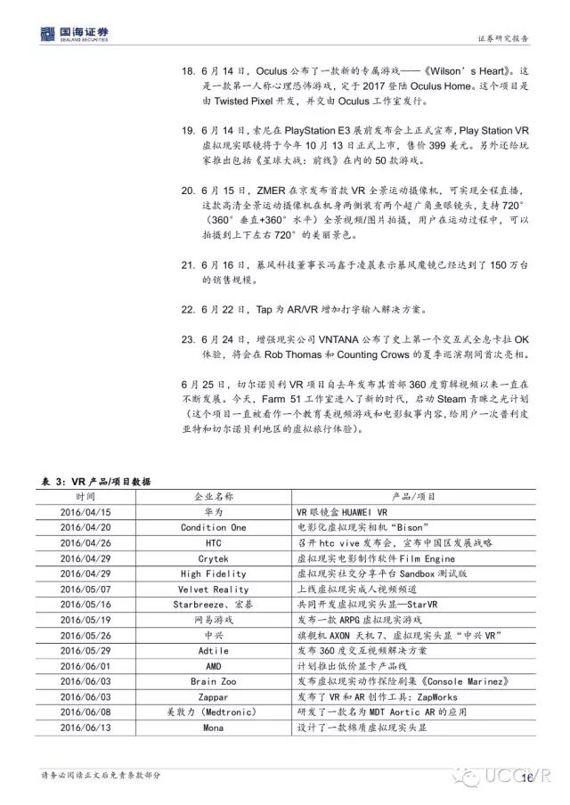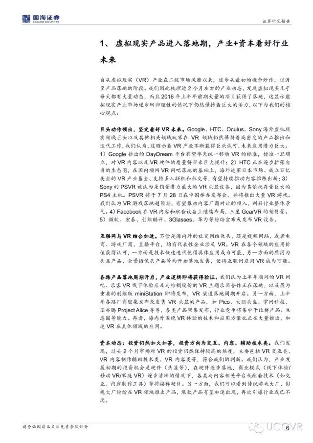 2016上半年虚拟现实(VR)产业跟踪报告:从蓝图到落地,虚拟现实产业+资本热度持续