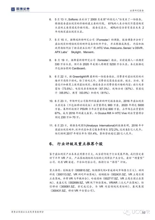 各路产品落地周期开启,产业逻辑即将获得验证。 我们认为上半年顺网的 VR 网吧、乐客 VR 线下体验店及与棕榈股份的 VR 主题乐园合作正在落地,以及最为重要的创维版 miniStation 即将发布, VR渠道落地周期开启。另一方面,上半年各路厂商密集发布或发售 VR头显的产品,如 Pico、大朋头盔、掌网科技、诺亦腾 Project Alice等等,各类产品密集发布,行业竞争将集中于比拼产品、生态圈等能力。 再者,海内外围绕 VR 体验的技术和应用方案也正在大量推出,加速 VR 在具体领域的应用。