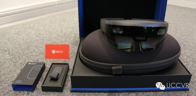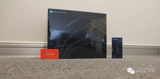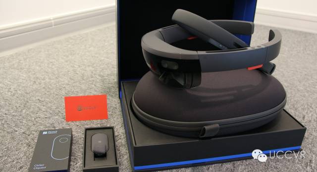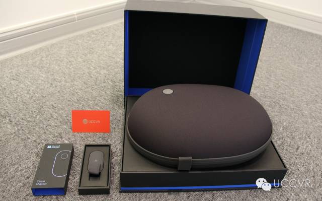 HoloLens 整套设备入手仅有一个整体外包装以及Clicker配件。Clicker和开发版头盔一起提供的,可以用它来导航HoloLens界面,不需要使用手势,充分考虑到了使用HoloLens长时间手臂酸痛问题。