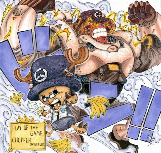6、平时温和开大爆炸的温斯顿和平时呆萌同样变身爆炸的乔巴(相似度70)