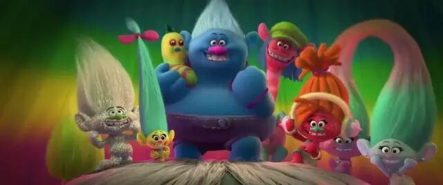 这部热闹的电影将给观众带来多彩的、奇妙的世界,充满了欢乐的魔发精灵,他们高兴地跳着舞唱着歌。