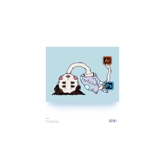 △ 这张的颜色很骚,大概可以判断出是出自一个很骚的男孩子。嗯。插画的精细程度需要统一一下,比如脖子上的塑料大金链子和主体不搭(别问我为啥知道是塑料的)。还有描边的颜色可以不用纯黑。描边的形态用的很到位。