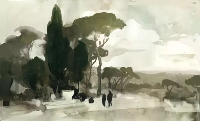 把 传 统 绘 画 和 数 字 绘 画 相 结 合,创 作 多 为 传 统 介 质 的 画,