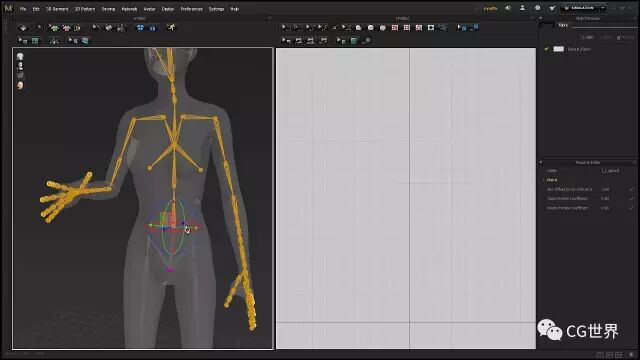 打开Arrangement Points,然后在3D视图中使用Select/Move工具选择图样,也可以使用2D视图中的Transform Pattern工具,把图样放置到相对应的对齐点上。这个地方要仔细的移动调整,要让图样尽可能的与Avatar的身体贴近,防止在模拟的时候下落。你可以是用Property Editor中的Arrangement Offset让图样包主Avatar。如果没有任何对齐点,那只能通过手动控制了。