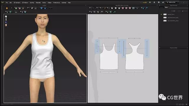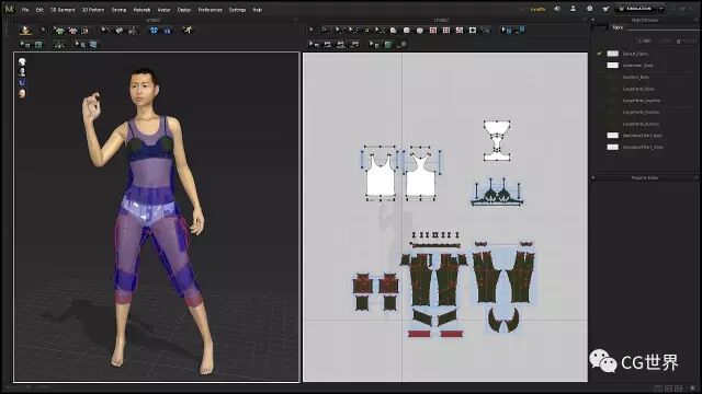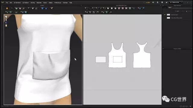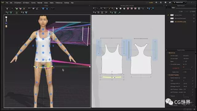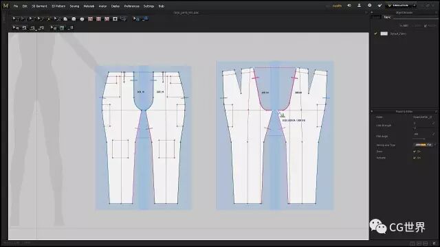 在进入细节之前你要设计好你的面料。MD有很多很好的预设,你可以用它们开始入手。点击模拟然后实时的调整面料。开始时候像衬衫和裤子可以用棉料的,包,皮带和帽子什么的用皮的,然后调整物理属性。有时候一件衣服需要各种不同的面料。