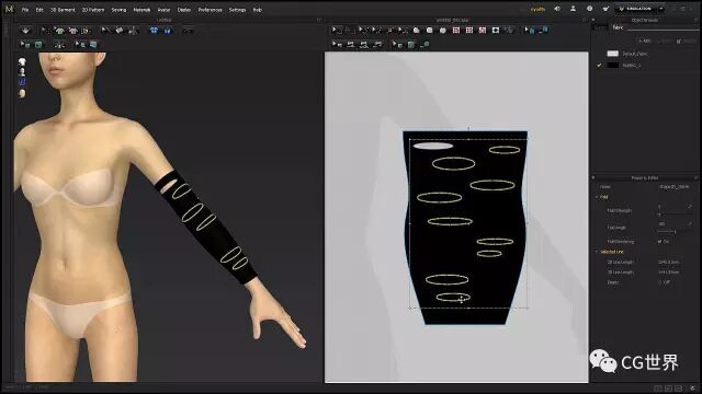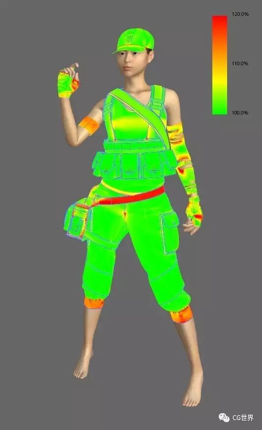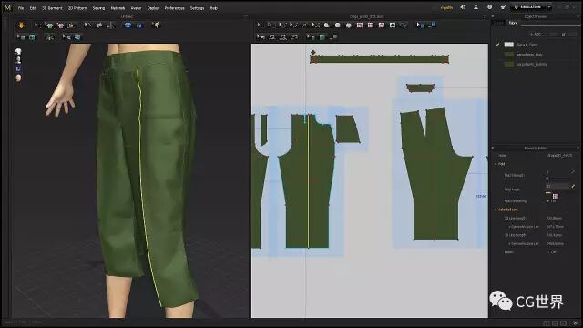 你要确保衣服在角色身上合身,不能太紧,也不能太大。打开Strain Map解决局部问题,检查哪里非常的紧,然后在2D视图中编辑下此区域让它稍微大一点,然后从新模拟检修下。如果衣服过大,只要调整大小并切掉多余的布料。尽可能保持图样的干净,有助于你之后加细。如果Strain Map是黄色/绿色颜色的,证明是合适的。