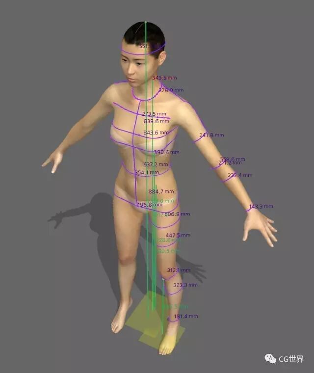 测量工作可以在你编辑衣服图样时让它更好的适合角色的身体。在MD中有两个主要的测量工具:一个是Circumference Measurement,另一个是Length Measurement。使用基本的CM工具测量腰部,臀部,大腿,膝盖,小腿,踝关节,胸部,肘部以及手腕。使用高度测量工具测量胸部,臀肌,脖子,腰围以及腿的高度数据。然后使用Surface Tape Measurement工具得到裤子和T恤的长度。