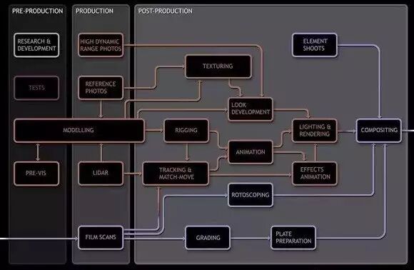R&D:全称Research and Development为研究与开发:这个在之前小枫撰写的那篇特效制作流程里提到了,在这里引用下:R&D是每个大型的特效公司不可缺失的部门。大多数的项目有针对项目特殊效果而产生的研发诉求,同样这些诉求也来自观众,对没有见过的视觉效果的渴望。R&D有时是对现有工具进行改进,有时为提高效率,有时因为一个项目,会新写一个工具,就像b2b客户定制。试图将所有的问题放在一两个软件里面解决是不可能的,所以需要R&D部门(一般有数学家,图形学家,科学家,程序员组成)去开发一些新的工具。新工具可以是现有软件的插件,也可以是一个独立软件。一般每个项目会配有一个小的R&D team ,大部分也会在公司出现整个公司共用一个R&D部门,项目与项目间相互技术共用和分享。