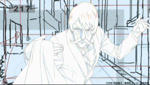 第七集,半田修平的作画部分。向空中放烧却炮的杰诺斯。从决意的表情转到向空中出招,非常理想的连接。这集是第一次其它S级英雄出场的集数,还有很多好的镜头。