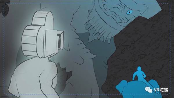 再说storyboard。传统的动画和电影,我们画出storyboard,反应出人物的动作和故事的节奏,不过在VR中似乎就显得有些急促了,因为这里的每个动作都要引导用户跟随过来,传统平面的电影在一个二维的空间里,用户可以在平面上快速地接收很多信息。