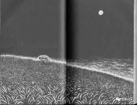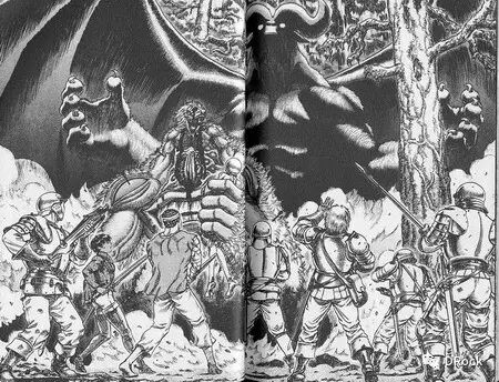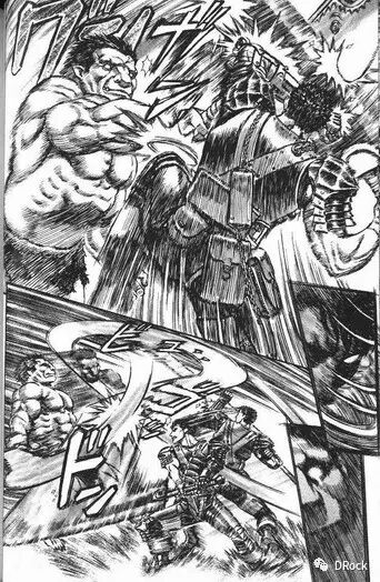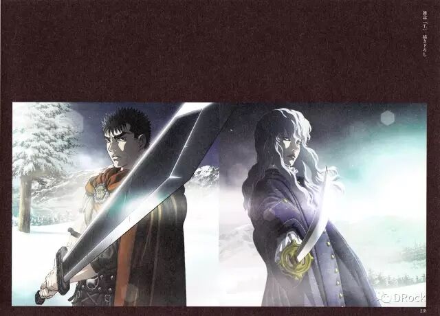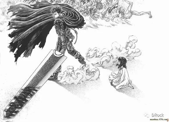 可以肯定的是,《剑风传奇》中的跨页特写很多都使用了西方油画中所使用的布局技巧,再加上精细写实的素描风格,就水平而言是远远超过普通漫画的。