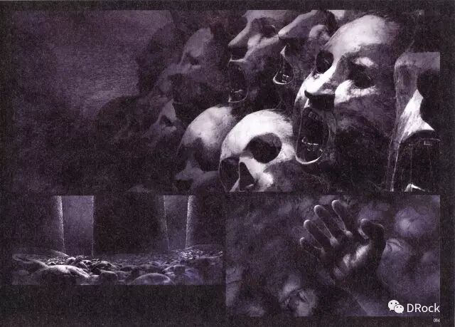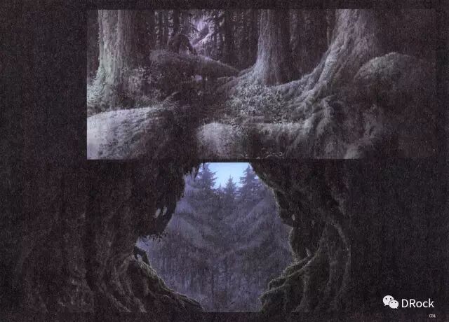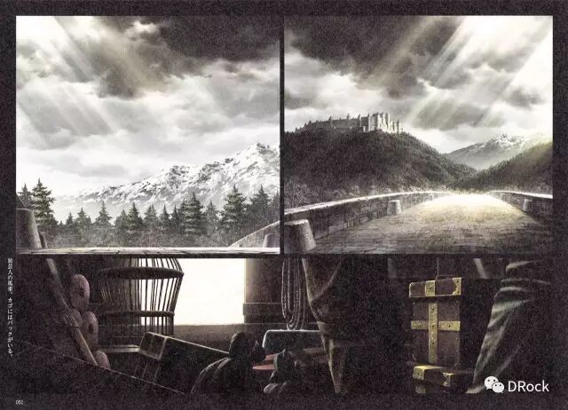 格斯处于左黄金分割线上,而月亮处于右黄金分割线上,正好形成一种光与暗的鲜明对比,烘托出整张图的绝望气氛。