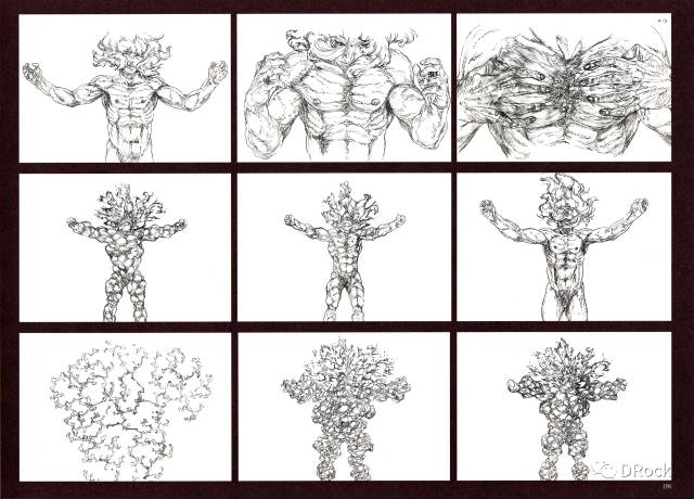 大猩猩华阿尔德的大小是鹰之团士兵的1.618倍,而左德的大小则正好是华阿尔德的1.618倍,三个高度层次形成了一个完美的黄金分割阶梯,整个视觉的中心因此集中在了漆黑的不死者身上。