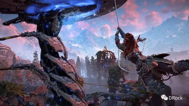 《地平线:黎明时分》由索尼第一方游戏工作室Guerrilla Games打造,本作的背景设定在在遥远的未来,在那里人类文明已经结束,被损毁的星球正在重建,人类并不是最优种群,高度发达的智能机械兽稳坐食物链的顶端。玩家在游戏中扮演一个被部落抛弃的年轻人Aloy,为了解开围绕她身边的一些神秘事件,踏上了冒险征程。