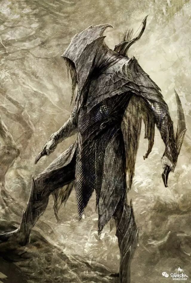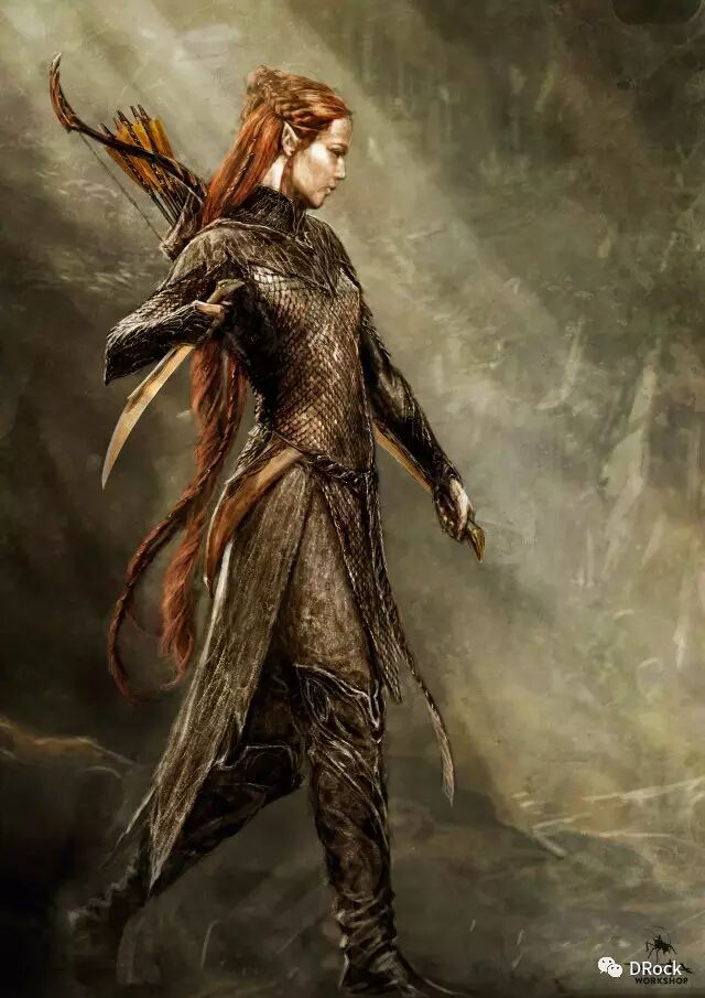 同时,电影加入了新人设--瑟兰督伊和塔瑞尔,他们都需要自己的独特的外观,并且带有清晰的密林精灵风格。因此他们的服装模糊了金属盔甲和布料织物的界限,并使用了密林独有的大面积暗绿色和灰褐色。