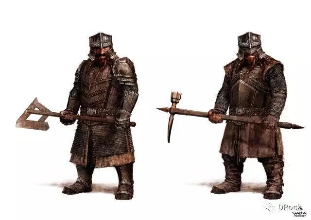 索林的团队准备守护他们的巨大财富,保卫矮人的孤山。所以小队中每个矮人都会有一套能代表矮人工艺水准、与众不同的豪华战甲。(据说后来演员们想要什么样的武器就会跑到道具室挑)