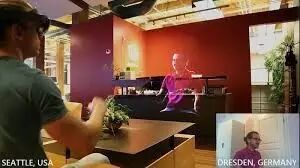 不过多个Kinect的架设可不容易,所以美国Valorem研发的一款叫HoloBeam的应用就可以帮你实现相对廉价一些的全息3D聊天这一愿望。这款应用只需要一组立体摄像头(例如Kinect),当你戴上Hololens头显之后,你会看到你的聊天对象处在你的周围环境中与你聊天,当然硬件缩了水,效果也自然逊一筹。