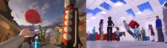 从现在的VR社交应用来看,相当一部分都自觉或者不自觉的内建了VR游戏,例如:Rec Room、腾讯互娱研发部VR平台、Facebook社交VR等等,否则仅仅是聊聊天或者看看朋友的虚拟形象着实无聊。