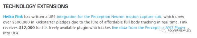 在那个时候并没有好用的Unreal引擎的Perception Neuron插件。网络上有一些开发者开发了自己的版本,其中有一名叫Heiko Fink的开发者还获得了Epic的Unreal开发者资助计划提供的1.2万美元的奖金。