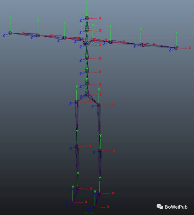 Neuron捕捉的数据是按照所有骨骼的局部坐标系的初始方向都与世界坐标轴一致来采集的: