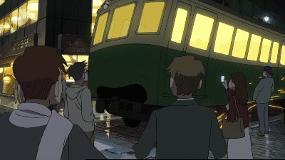 在《有顶天家族》的第3集里,井上俊之还为我们展现过一个弁天大人的下意识的“用扇子拍脸”演技。虽然说不上在作画上有多么惊艳,但从演出的角度来说,这个颇带色气的动作,使得弁天这一角色形象增色不少。能用精密的计算自然地表现出角色无意识状态下的演技,就像一个演员能把无意识下的习惯性动作也给漂亮地表演出来一样,是非常不简单的一件事。井上俊之这种“精炼动态、优化路径”的方式并不仅仅体现在无意识的演技中。通过计算,他可以有效地缩减作画张数,并达到一个恰到好处的效果。无论是有质感的衣物飘动,还是有量感的波涛涌动。不过,在控制作画的同时,他也会考虑动作的合理性和多样性,不会在“让场景变得有趣”这点上妥协。因此,我们才能看到《有顶天家族》中弁天拉伸上肢时的重心移动,以及以各种各样的姿势被吓瘫的路人演技。井上俊之的计算,是通过对现实的观察和理解,再结合对动画实际情况的考量后,归纳获得的作画方法。不观察现实,仅靠空中楼阁式的计算,始终是无法骗过观众的眼睛的。