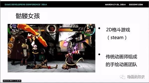 在旧金山每年一度举办的游戏开发者大会(GameDeveloperConference)上,一位资深二维游戏动画总监@kinucakes以她制作的2D格斗游戏骷髅女孩Skullgirls为例给大家分享了她的创作经验。