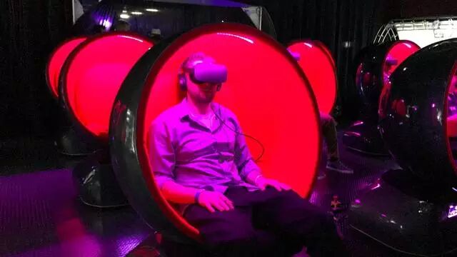 就外观而言,Voyager很像蛋形蚕茧椅,与电影院普通座椅大不相同。椅子可以旋转,可以倾斜,能够提供触觉反馈功能,可以将观众带到虚拟世界,沉浸其中。Voyager是专为VR头盔设计的,我们通过VR头盔观看内容。