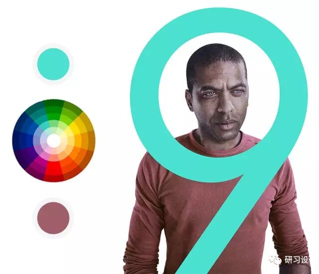 从图像中提取灰色调的红色,从色相环上看,选择与之相对的蓝绿色作为画面的副色,将副色提高到明色调来让两个颜色和谐的搭配再一起。