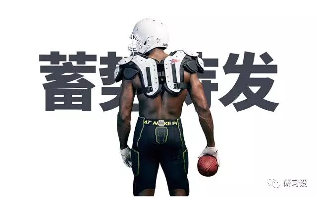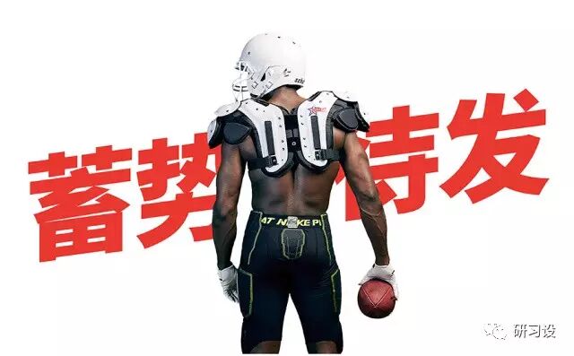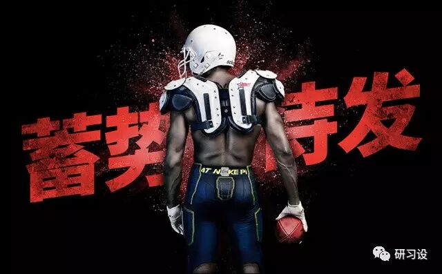 将主题“蓄势待发”放置到画面中心位置,字形选用较粗壮的黑体,主体文字倾斜放置,为版面带来动感。我们以图像叠压在文字之上的方式来增强画面的层次,通过斑驳的肌理与爆破性辅助元素来烘托画面的运动氛围。红黑的色彩搭配使得原本的画面更加具有能量和视觉冲击力。