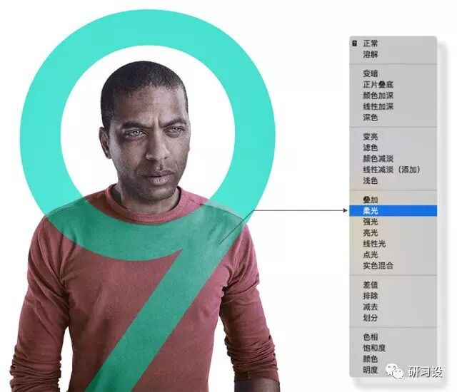 修改图层混合模式,使文字与图像之间隐约可见,也为文字内部添加了更多的细节。增强画面表现力。根据画面实际情况选择相应的混合模式选项 ,这里选择柔光。(在不同软件中设置稍有差异)