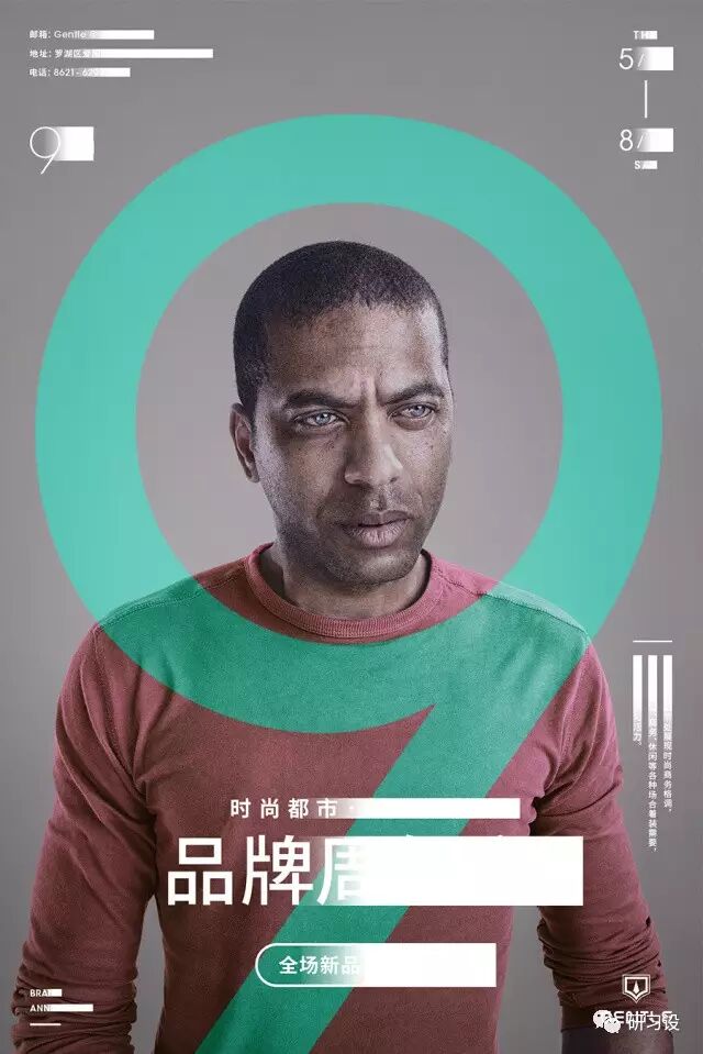 将模特放入画面中,可能是品牌创始人,或者是代表品牌气质的代言人。字体的选择并没有固定模式。这里选择和图像感觉类似的字体。与图像类似,字体也是图形化的,不同的字体会赋予画面不同的气质。通过分析图像,得出关键词阳刚、简练、时尚。根据定位,比较适合选择无衬线类字体。