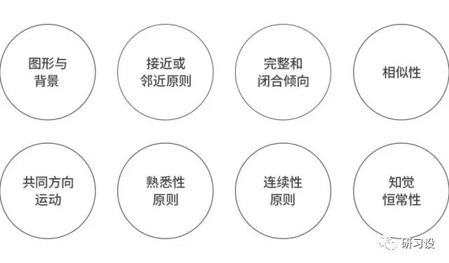 人类天生具有一种组织倾向,使我们能够在视觉环境中组织排列事物的位置,感受和察觉出环境的整体与连续。有8条格式塔组织原则内容如下: