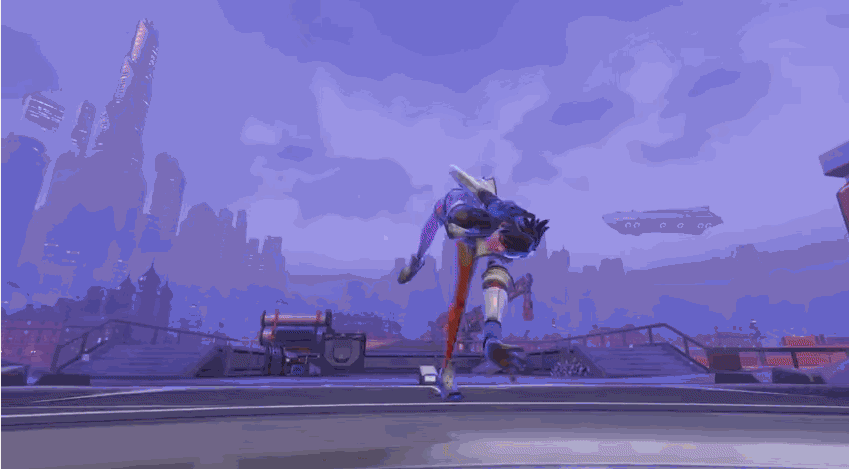 在游戏中你就能看到猎空如飞燕游龙的身姿,轻盈又有弹性,她强劲有力的双腿一直在推着她前进,双脚又仿佛在地面上滑行,身姿设计的非常非常优美。