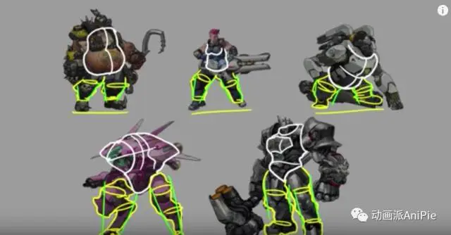 另外一个要提到的就是,守望先锋里的独家设计,他们的每一个角色模型都有一个被称之为“面条骨骼”的控制器。