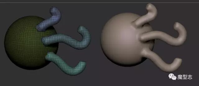 那么zbrush会进行自动遮罩,并且有一个投射的过程。非常方便。