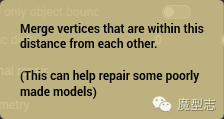 Merge distance 最小合并点距离(用于优化面数,合并低于输入值以内的)