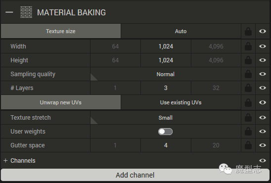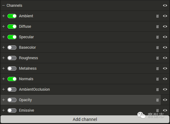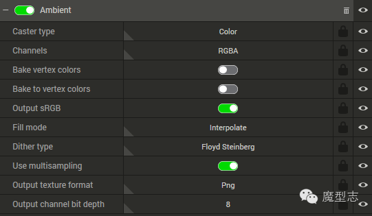 (可以烘焙的通道的开关 ,都是制作中的一些常用通道)