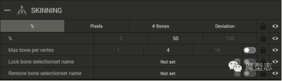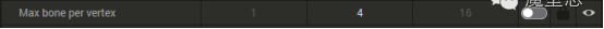 这个属性结合下面的属性 Max bone vertex 每个点最多有4根骨骼与其有权重关系