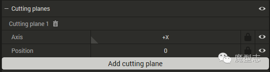 ·Cutting planes 切割面,Add cutting plane 添加切割面,轴想选择,位置调整