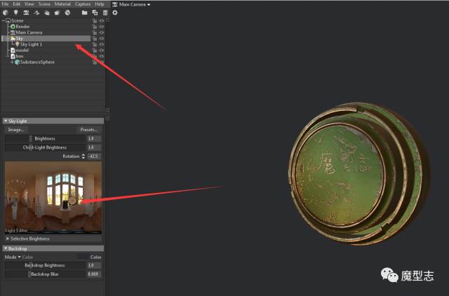 在sky菜单的下边你就可以找到你创建的灯光,左下的菜单进行设置。