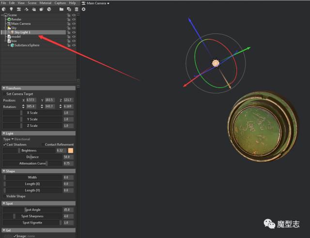 下边shape以及Spot都是灯光形态以及范围的一些设置,你们可以自己尝试一下。