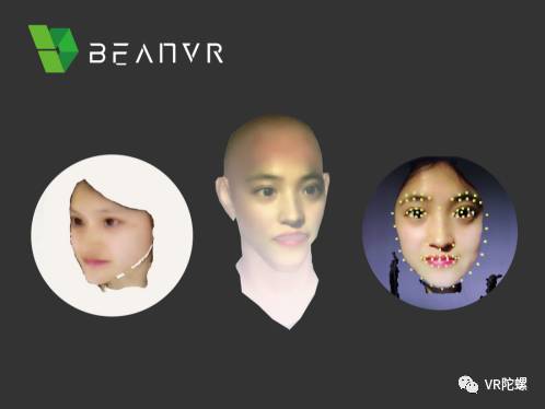 VR社交软件应用BeanVR,主打VR/MR社交互动应用。在角色化身创建中,通过普通摄像头对人脸扫描进行三维重建,形成真人虚拟化身,并且在三维建模完成后,利用人脸特征点识别、神经网络技术、特征对象特征点识别与tracking等实现低延迟的表情同步。真人化身及表情同步对,可以与VR社区中实现同步、高度拟真、高度互动感。