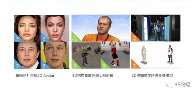 VR3D扫描可以通过3D扫描技术高度还原玩家头部甚至全身,量身打造真人化身,未来在在美颜卡通拍照、游戏、社交虚拟ID、医疗上可应用性更高。也是未来AI在消费应用领域大规模应用的典型场景,想象一下一个拥有绝世容颜的SIRI在VR社交中陪你到老的浪漫感觉。