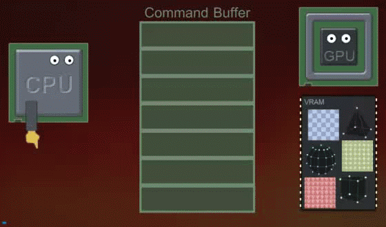第一点的时间消耗其实并不大。关键的时间消耗在于第二点。所以一般情况下我们希望Command Buffer缓存尽可能多的命令,然后一次全部提交给GPU执行。
