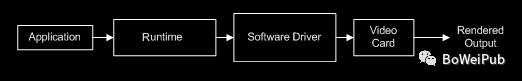 我们的Application中每一次API调用都会经过Application->Runtime->Driver->Video Card(GPU),其中每一步都会有一定的耗时。