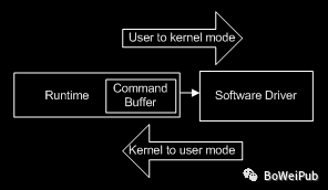 命令从Runtime到Driver的过程中,CPU要发生从用户模式到内核模式的切换。模式切换对于CPU来说是一件非常耗时的工作,所以如果所有的API调用Runtime都直接发送渲染命令给Driver,那就会导致每次API调用都发生CPU模式切换,这个性能消耗是非常大的。Runtime中的Command Buffer可以将一些没有必要马上发送给Driver的命令缓冲起来,在适当的时机一起发送给Driver,进而在Video Card执行。以这样的方式来寻求最少的CPU模式切换,提升效率。