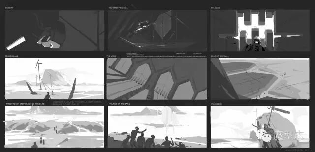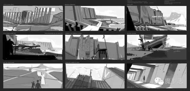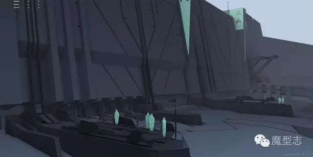 对于陌生人和亚当及其他同僚会面的关键地点,野外我们想更好的表达出神秘感,就像一座寺庙。远方设计成为一个比较对称的破损的阻隔作为我们背景,这能更好的突出后边的神秘感。