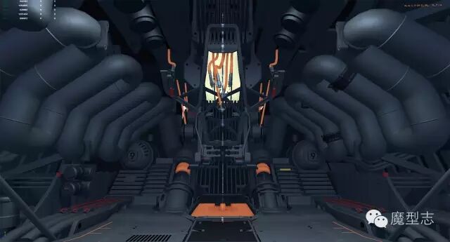 最初的想法我们希望我们的故事从这里开始,也是主角亚当的降生的地方当,因此,他的设计发挥着很大的作用,我们希望他可以给与人们幽闭恐惧,我们继续延续解剖的理念,我们设计了一些类似与大肠状的管道来填充整个空间,甚至把他设计成一个机械的发源地,亚当的故事将从这里开始。