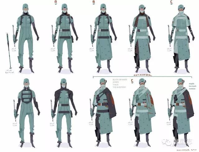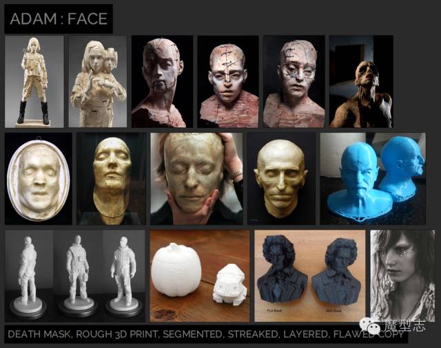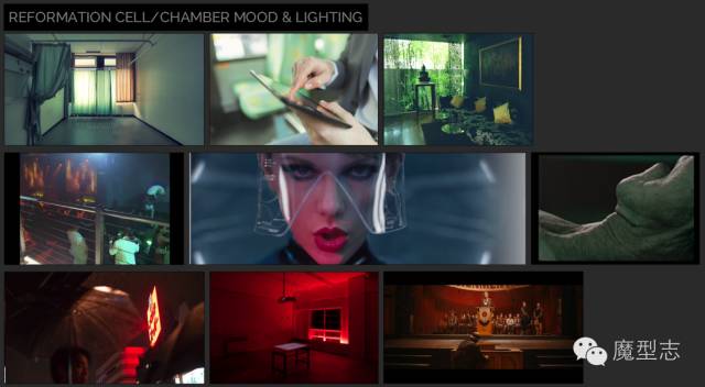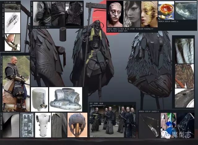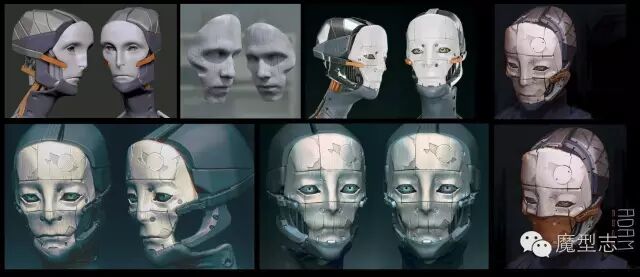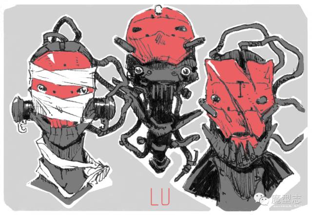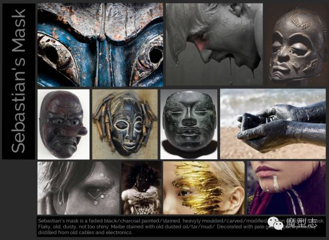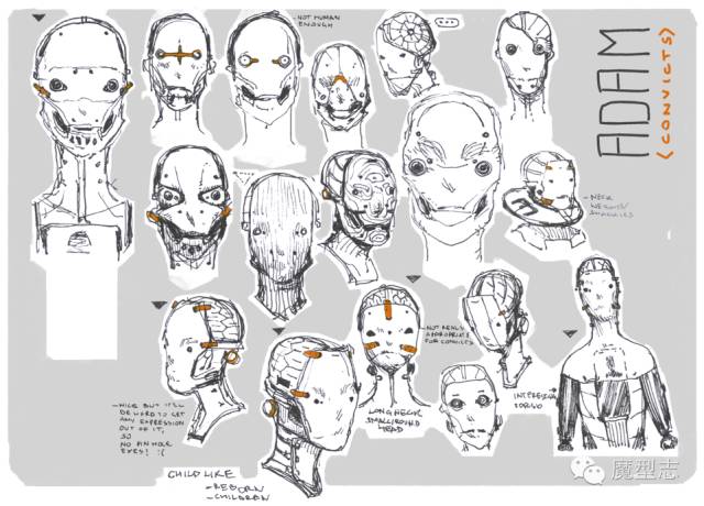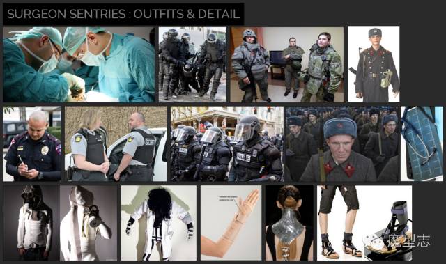 另外一个关键的设计就是如何精简犯人罪行仪表的设计,这通过胸口的监视器或者是平板电脑来显示他们个人概述。对于大部分的研发制作来说这个概述表现可以让你看到他的过去状态,这就会和脸部面无表情的一张面具形成鲜明的对比,所以这个是的我在最终设计一张很简单的面具,使得观看者的焦点都放在胸部。