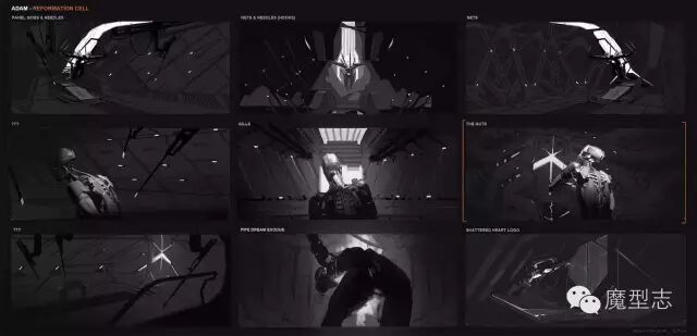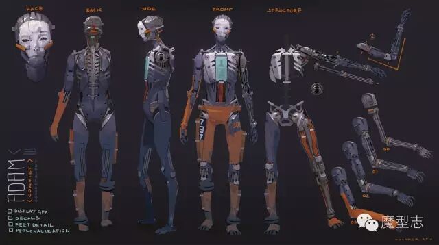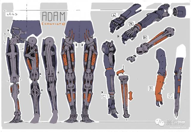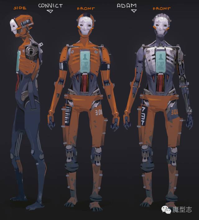 这个短片的的背景设定是未来的人类社会,where human society is transformed by harsh biological realities and civilization has shrunk to a few scattered, encapsulated communities clinging to the memory of greatness.Adam, as our main character, was the starting point of our visual design process. He was designed to provide a glimpse into the complex backstory of the world, by revealing himself as a human prisoner whose consciousness has been trapped in a cheap mechanical body.,这些我不会翻译!!!!!!大概就是主角亚当是一名廉价机械体的囚犯,巴拉巴拉巴拉。。。